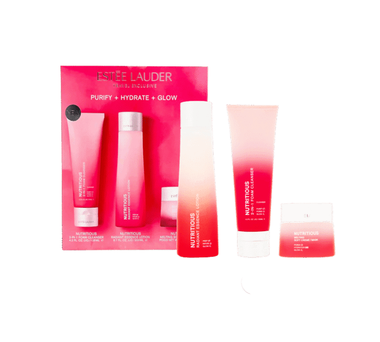 با پک ویژهی Estée Lauder PURIFY + HYDRATE + GLOW، روتین پوستیتان را به سطح جدیدی ببرید. این مجموعهی سفری با طراحی خاص برای سفر و استفادهی روزانه، شامل محصولات کلیدی برای پاکسازی عمیق، آبرسانی قوی و افزایش شفافیت پوست است.