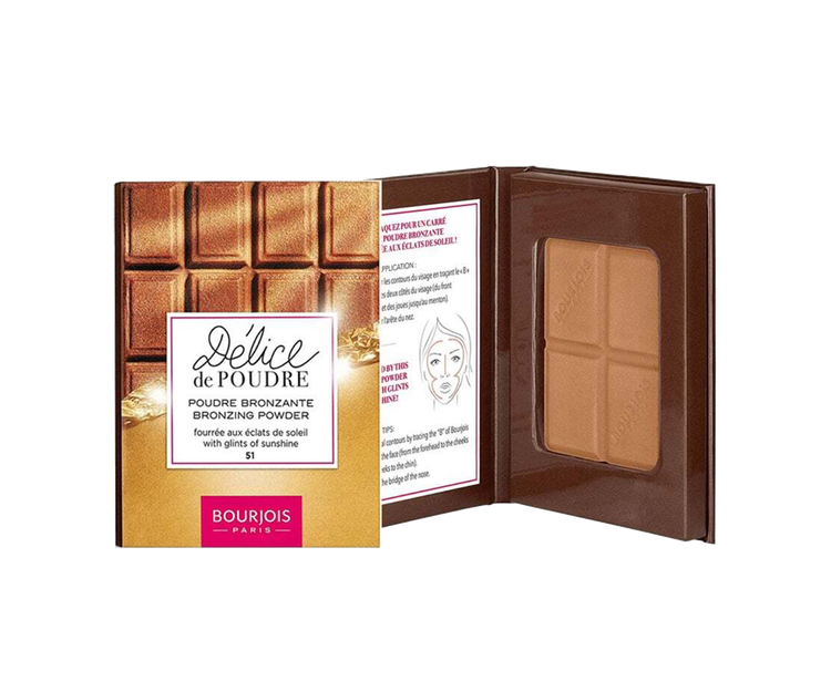 معرفی کوتاه: پالت برنزه چاکلت بورژوا قابل استفاده به عنوان پنکک و رٰٰژگونه برنزه کننده رنگ پوست دارای دانه های طلایی رنگ و رندگدانه های عمیق حاوی رایحه معرکه شکلات بافت سبک و لطیف