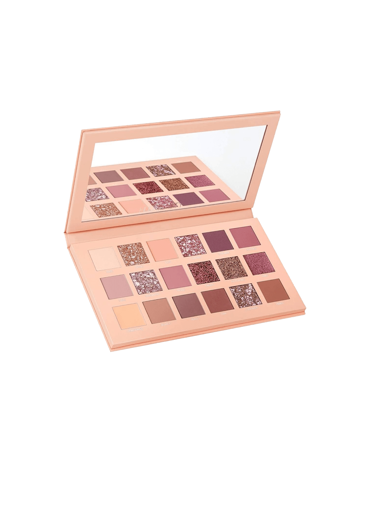 پالت سایه نود هدی بیوتی پیگمنت و رنگدانه بسیار بالا ماندگاری بالا و بدون ریزش دارای 18 رنگ کاربردی بافت پودری و نرم تعادل میان رنگهای سرد و گرم مناسب انواع تناژ پوستی دارای 10 رنگ مات، 4 رنگ شیمر، 2 گلیتر و 1 کانسیلر
